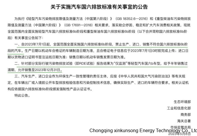 第一階段,從2020年7月1日起,不能銷售、注冊、上牌低于國6a標準的汽車;第二階段,從2023年7月1日起,不能銷售、注冊、上牌低于國6b標準的汽車。